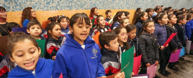 Justo al mediodía se llevó a cabo el peak de celebración de la Semana de la Educación Artística, SEA 2017, con un coro de niños, niñas y jóvenes de ocho establecimientos educacionales de la Región Metropolitana, quienes interpretaron frente a los pasajeros y transeúntes dos canciones de Violeta Parra en homenaje a los 100 años de su natalicio. Actividad en que estuvo presente el Ministro de Cultura, Ernesto Ottone; la Seremi de Educación Región Metropolitana, Teresa Vallespín y la Directora Regional del Consejo de la Cultura de la Región Metropolitana, Ana Carolina Arriagada.