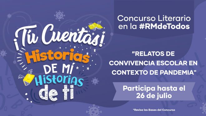 El equipo de Convivencia Escolar de la Secretaría Regional Ministerial de Educación de la Región Metropolitana lanzó el Concurso Literario “Tú Cuentas: Historias de mí, historias de ti” Relatos de Convivencia Escolar en Contexto de Pandemia, para estudiantes de 7° básico a 4° medio.