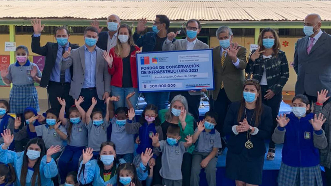 El Secretario Regional Ministerial de Educación de la Región Metropolitana, Ricardo Villegas, junto al Ministro de Educación, Raúl Figueroa, participaron de la Ceremonia Proyectos de Conservación 2021 en el Colegio Lonquén de Calera de Tango.