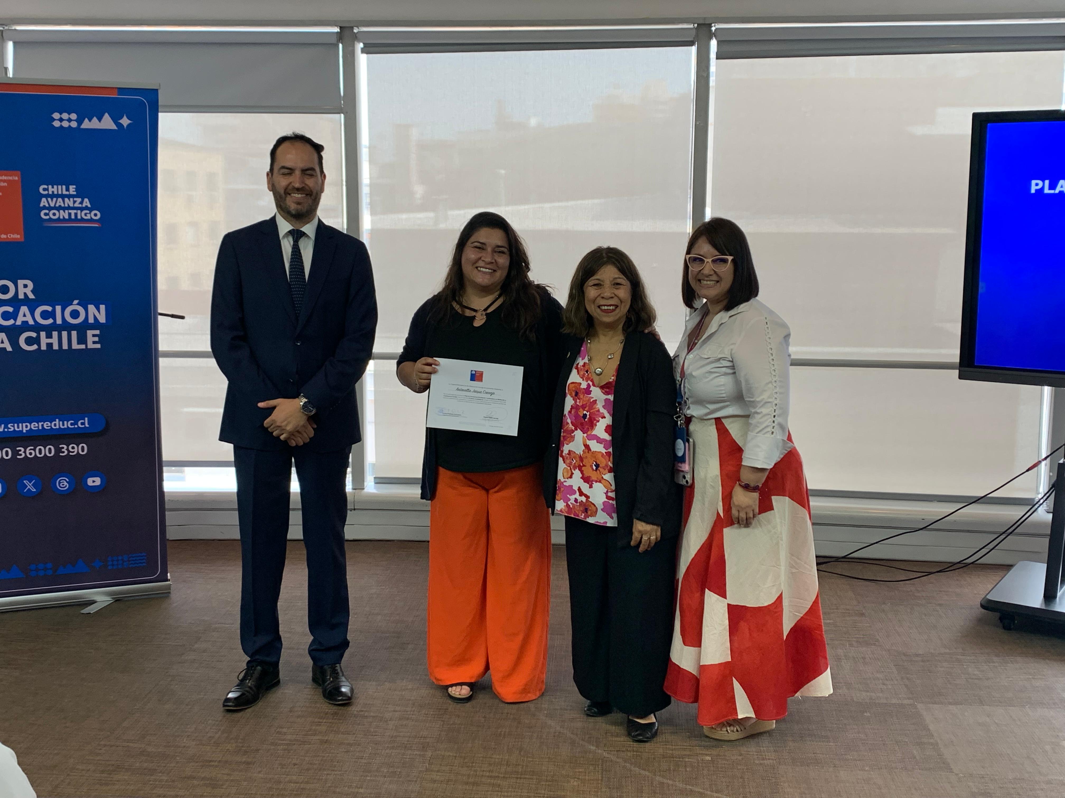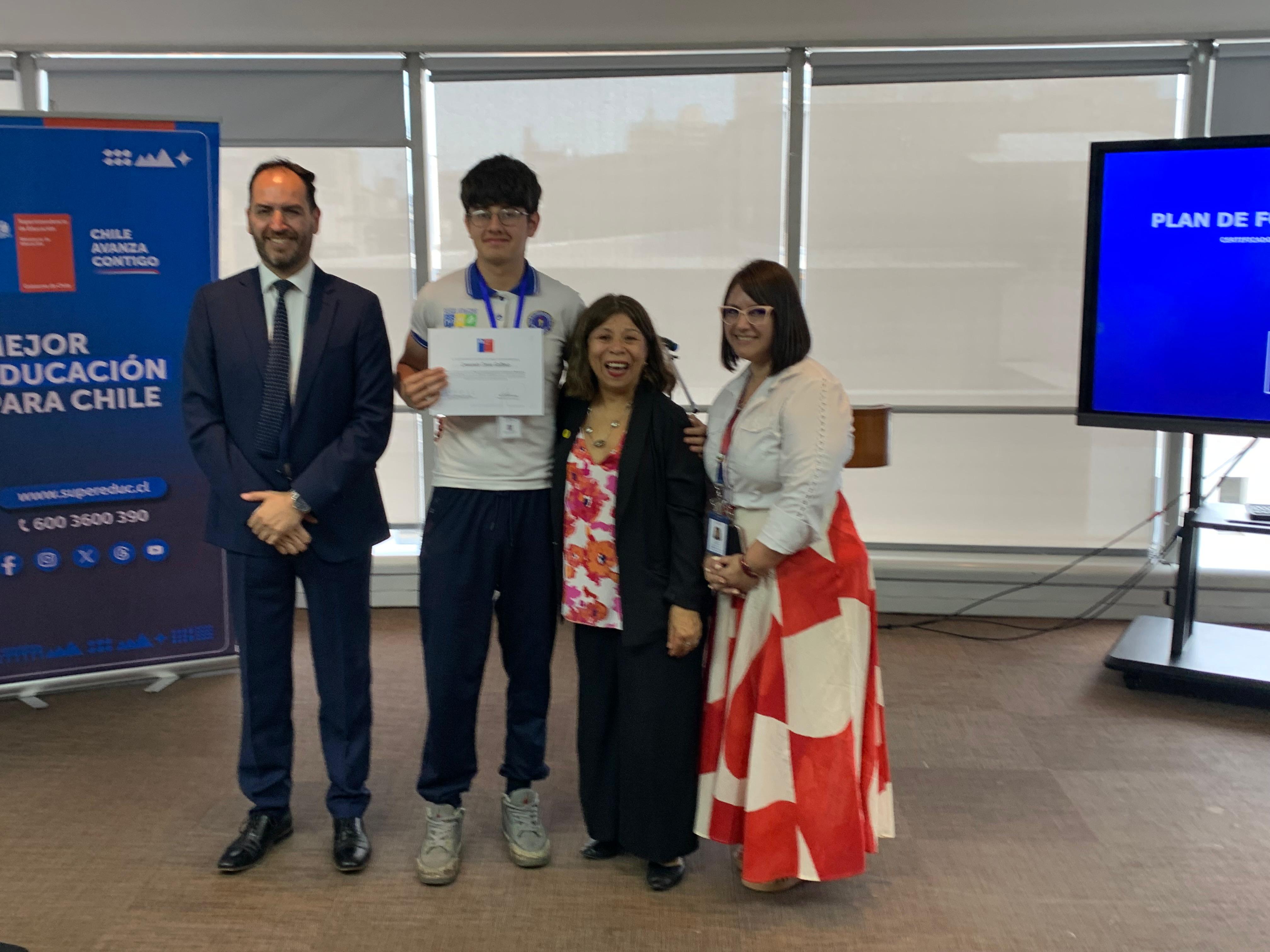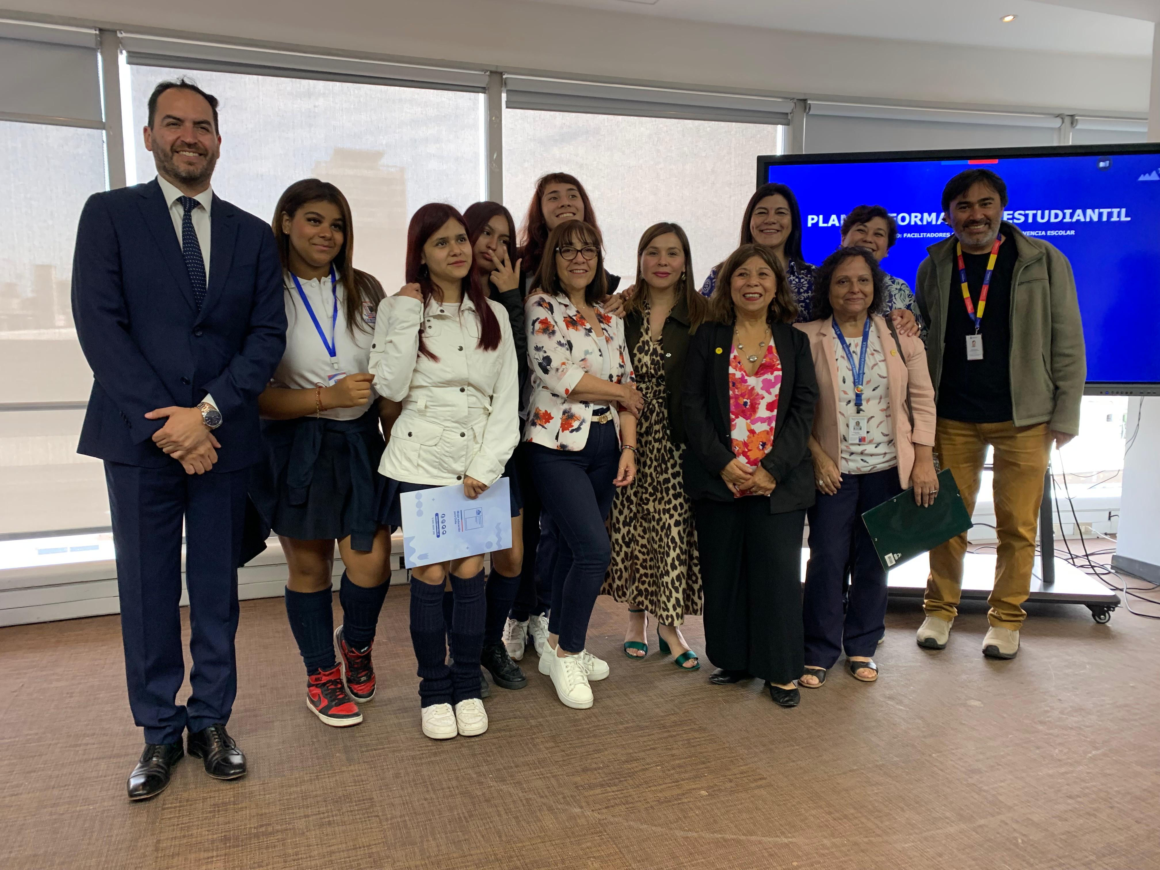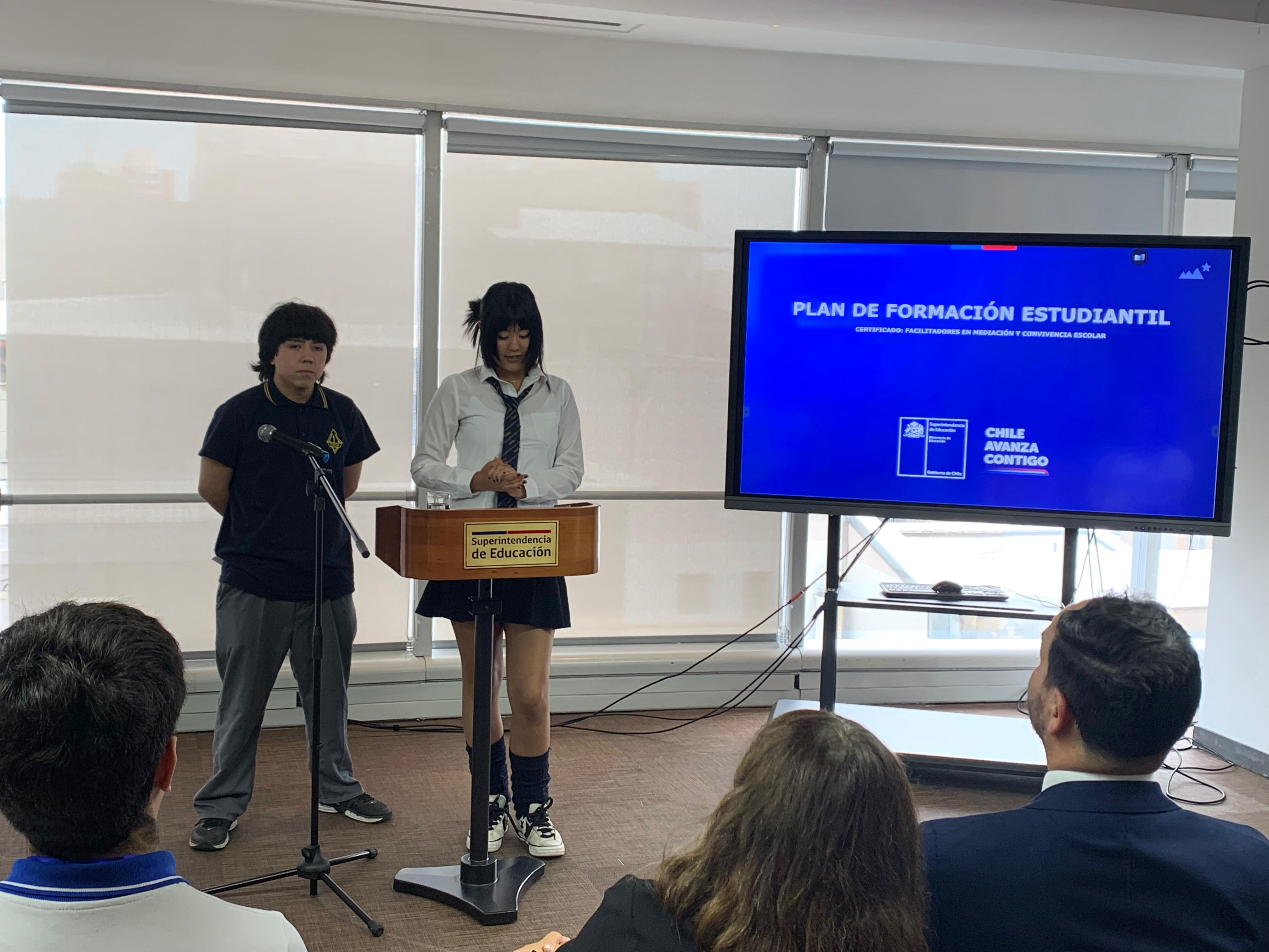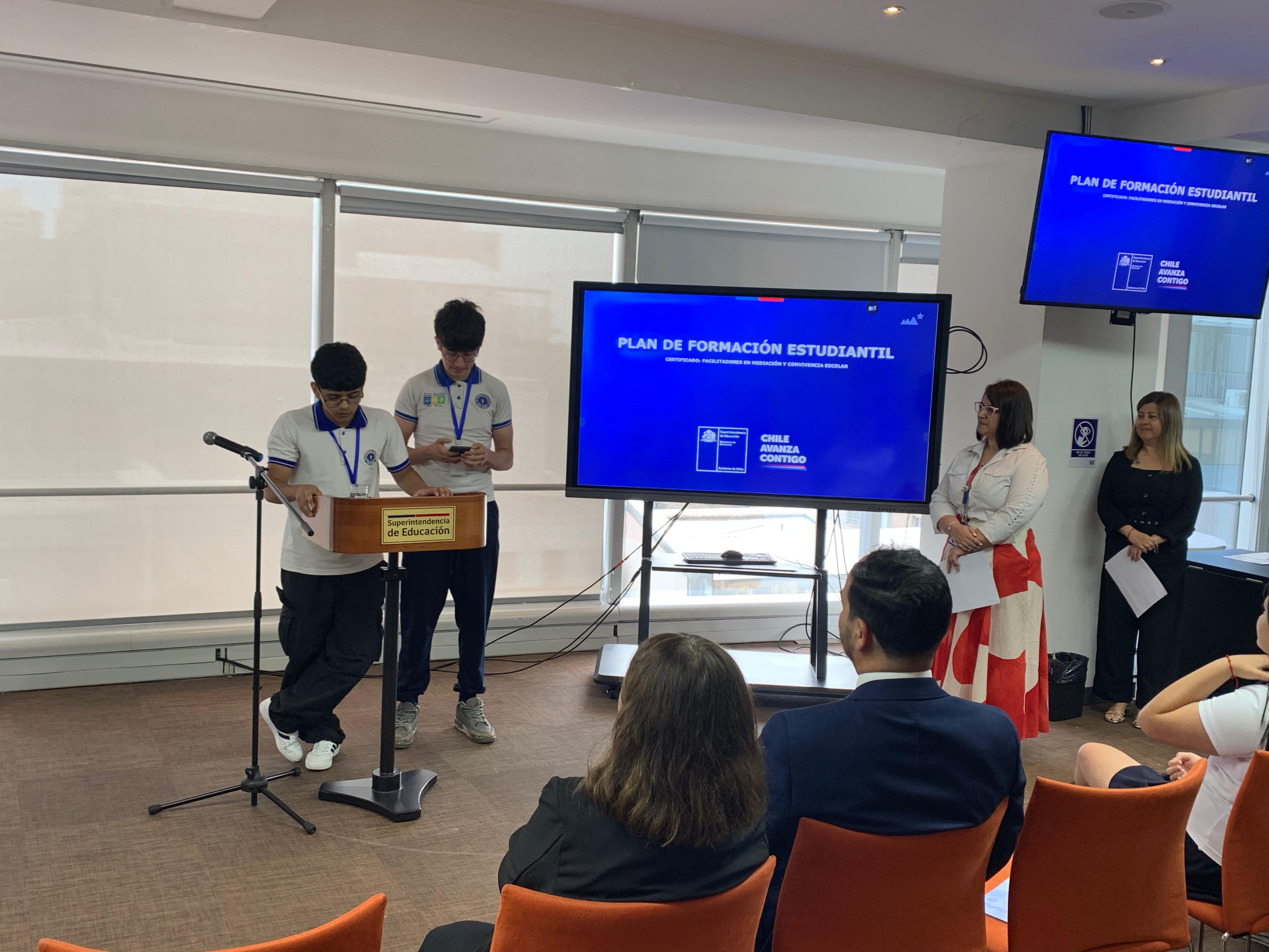 El pasado martes 9 de diciembre, en la Superintendencia de Educación, la Seremi de Educación de la Región Metropolitana, Raquel Solar Sánchez, junto al jefe provincial Talagante, Pablo Carrizo, y la jefa del Departamento Provincial Norte, Lilet Rozas, estudiantes de establecimientos educacionales de la región metropolitana recibieron la certificación que los acredita como facilitadores/as en Mediación y Convivencia Escolar.