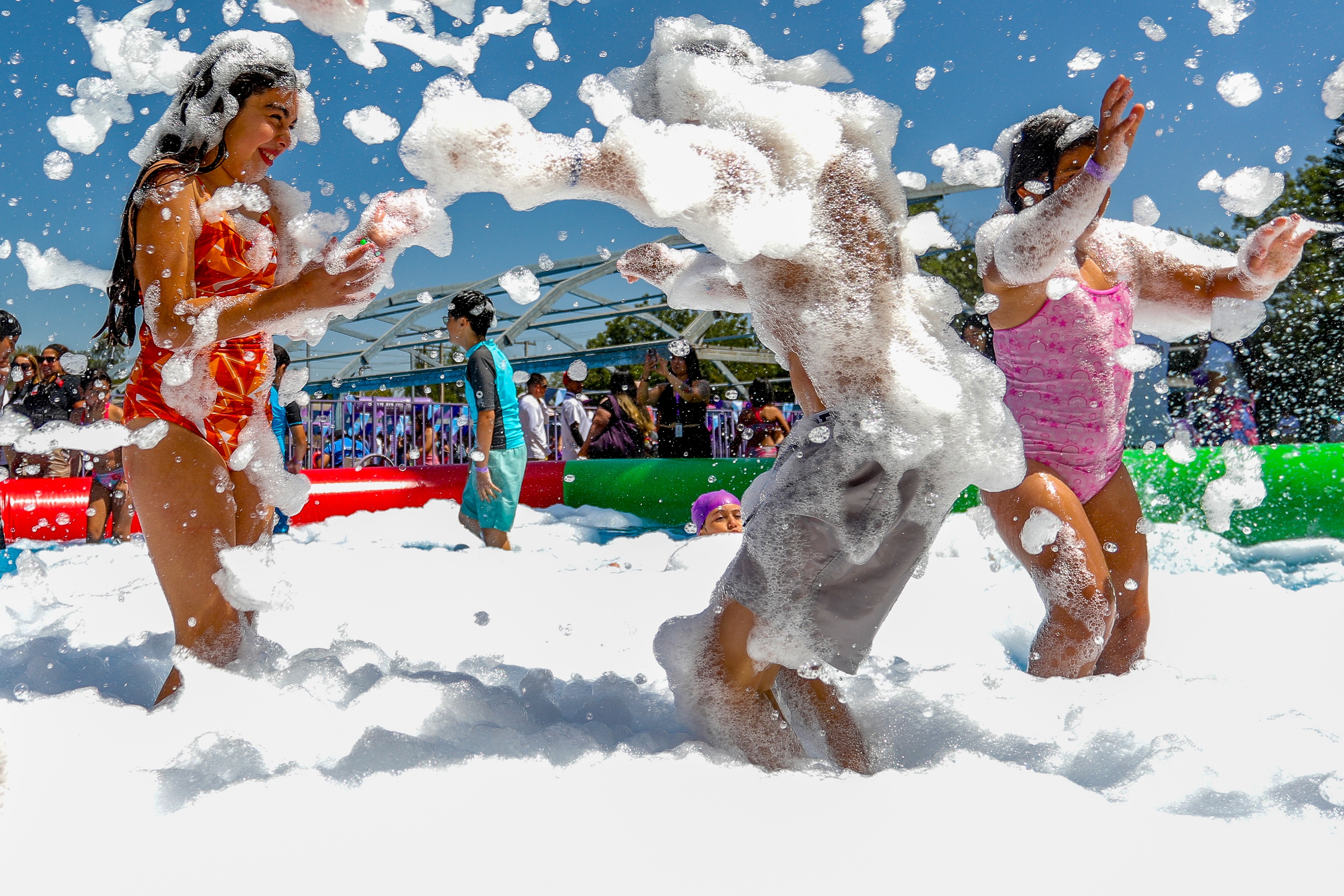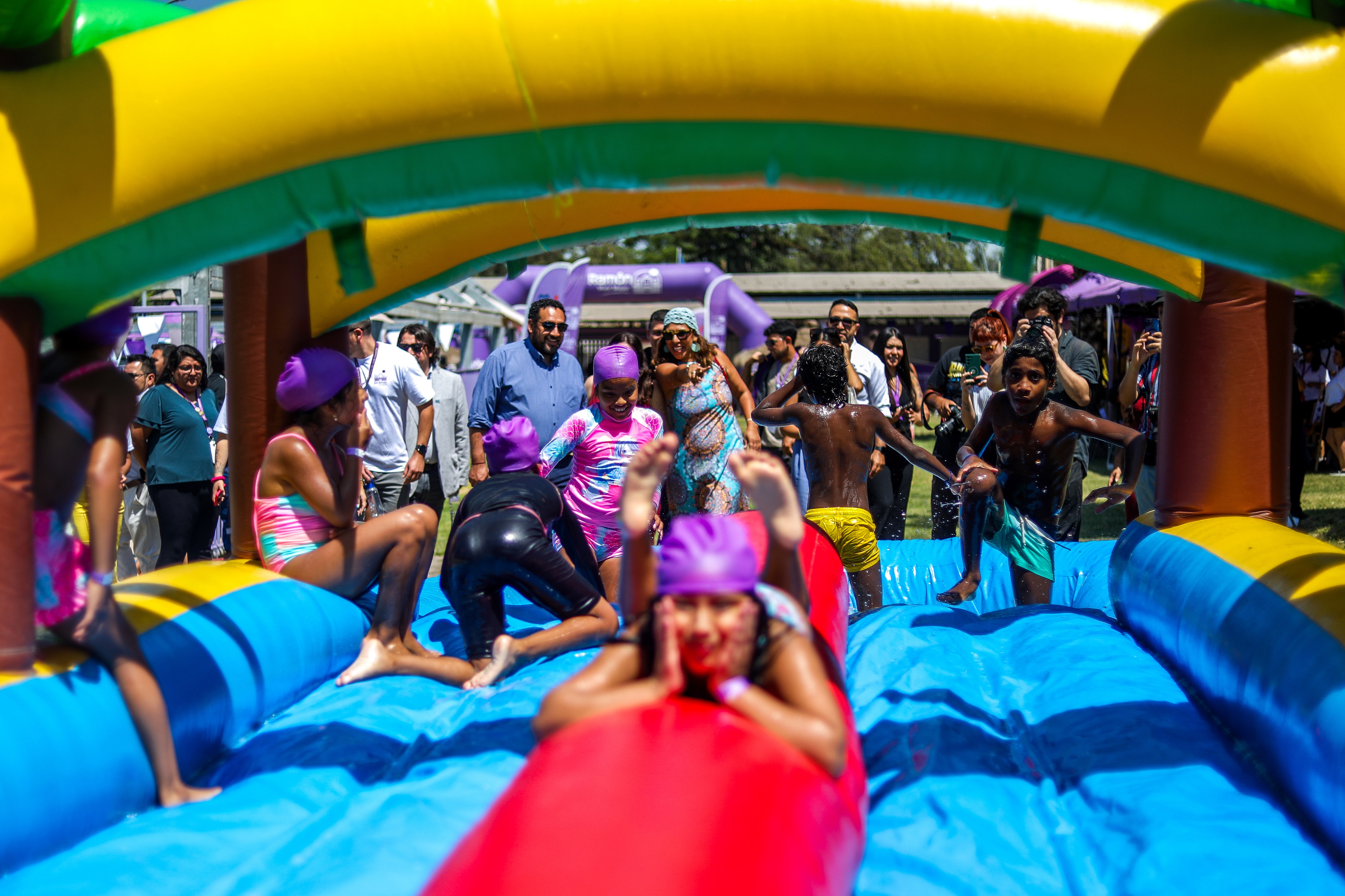 Durante el recorrido por las distintas estaciones de la Escuela Abierta de San Ramón, las autoridades pudieron observar cómo niñas y niños, desde educación inicial y hasta enseñanza media, participaban activamente en juegos educativos como Palabrática, se deslizaban en juegos inflables dobles, disputaban partidos en una cancha de fútbol jabonosa, jugaban vóleibol con pelota gigante y practicaban zumba acuática, en un ambiente marcado por el aprendizaje, la recreación y la sana convivencia.