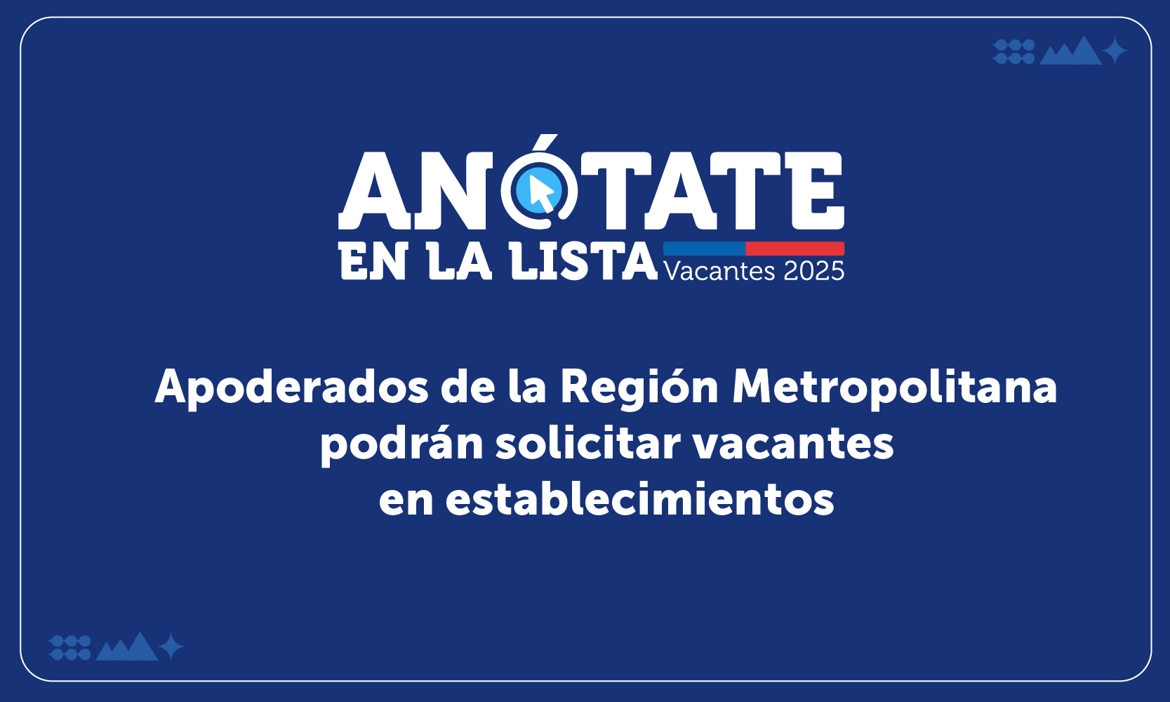 Para adelantar los trámites, se sugiere que las y los apoderados que necesitan matrícula para el año 2025, puedan conocer la plataforma antes de que inicie el periodo de regularización que les corresponda.